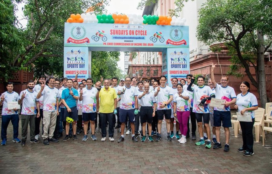 In continuation of the celebrations of National Sports Day 2025, the Income Tax Department, Delhi, organised a Cyclothon on August 31, 2025, with the objective of promoting fitness and well-being among the officers and officials of the Department. The event was flagged off by Shri Prawin Kumar, Principal Chief Commissioner of Income Tax, Delhi, who motivated the participants to give due priority to physical fitness and emphasized the importance of maintaining a healthy work-life balance. The event was also graced by the presence of Shri AnandJha, Chief Commissioner of Income Tax-1, Delhi, and Shri AnuragSahay, Chief Commissioner of Income Tax (Central), who encouraged the officers and officials to participate in sports and fitness activities with enthusiasm and regularity.