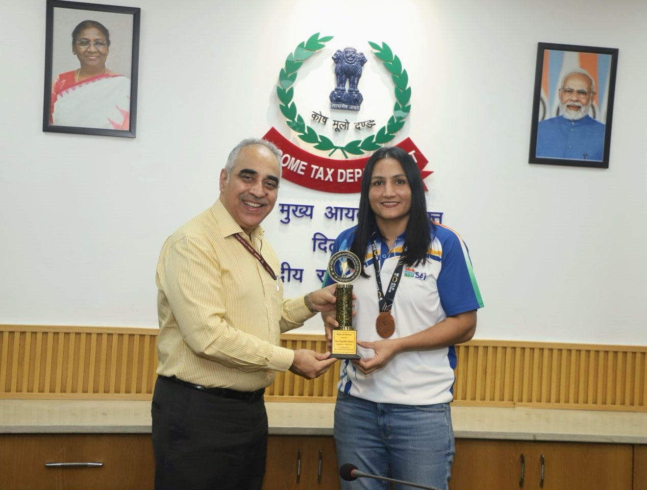 प्रधान मुख्य आयकर आयुक्त, दिल्ली, श्री प्रवीण कुमार ने आयकर विभाग की निरीक्षक सुश्री पूजा रानी को वर्ल्ड बॉक्सिंग चैंपियनशिप 2025 (लिवरपूल) में महिला 80 किलोग्राम भार वर्ग में कांस्य पदक जीतने की ऐतिहासिक उपलब्धि पर सम्मानित किया। उन्होंने प्रशंसा करते हुए कहा कि पूजा रानी की निष्ठा, कठिन परिश्रम और अटूट दृढ़ संकल्प ने न केवल विभाग को, बल्कि सम्पूर्ण राष्ट्र को गौरवान्वित किया है। अपने अनुभव साझा करते हुए पूजा रानी ने बताया कि अनुशासन, निरंतर मेहनत और परिवार व कोच का सहयोग उनकी ताक़त रहे। पदक को उन्होंने देश और विभाग के सम्मान का प्रतीक बताया। समारोह में वरिष्ठ अधिकारी व सहकर्मी उपस्थित रहे और शुभकामनाएँ दीं।