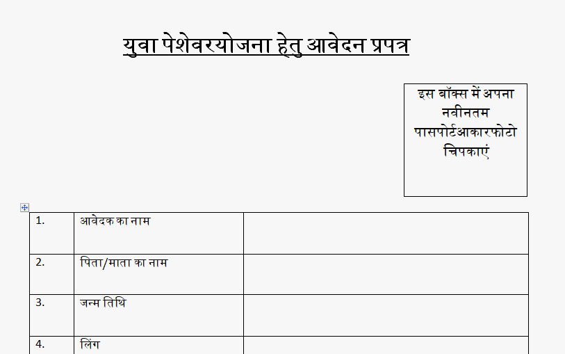 युवा पेशेवर योजना हेतु आवेदन प्रपत्र(Hindi Doc)